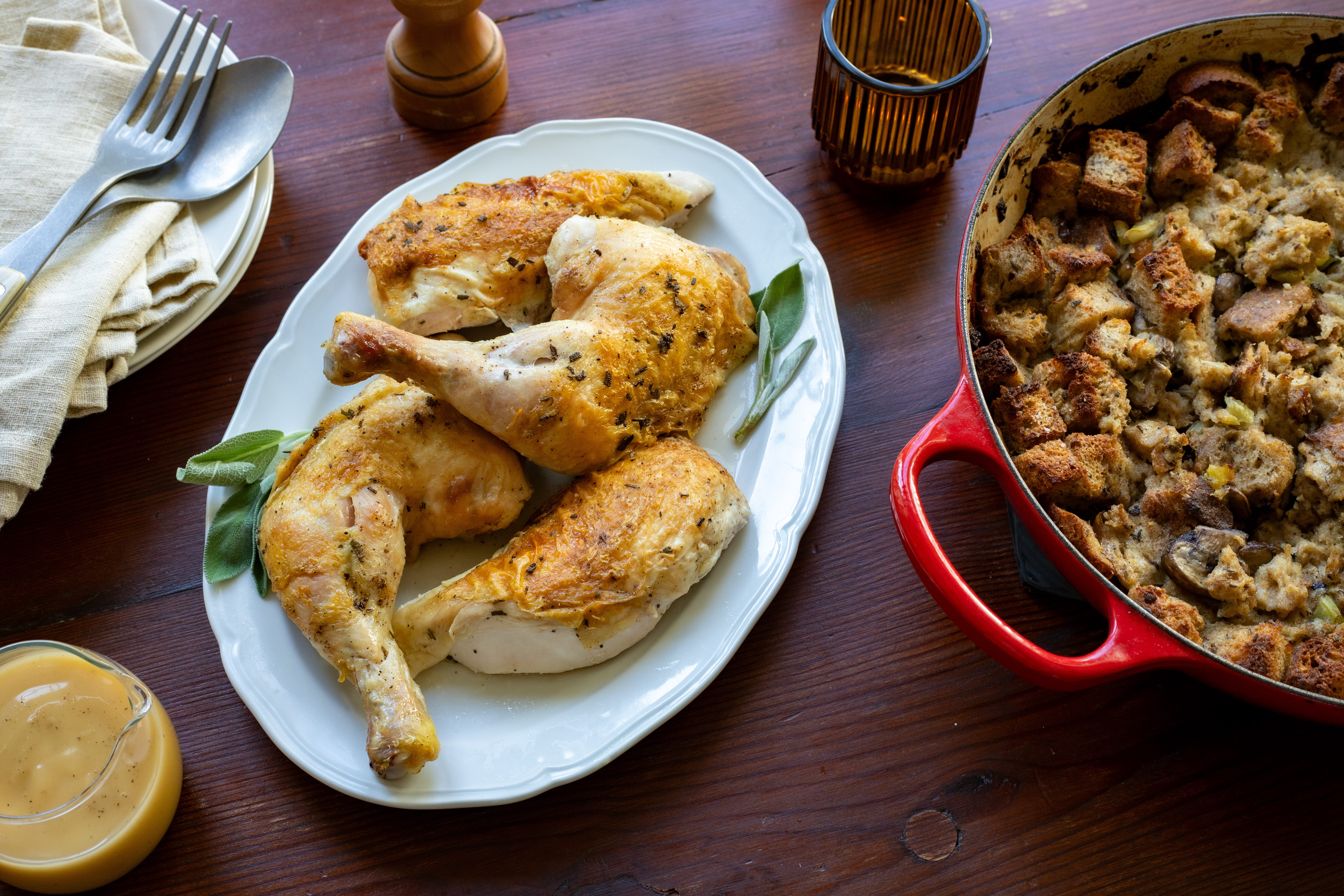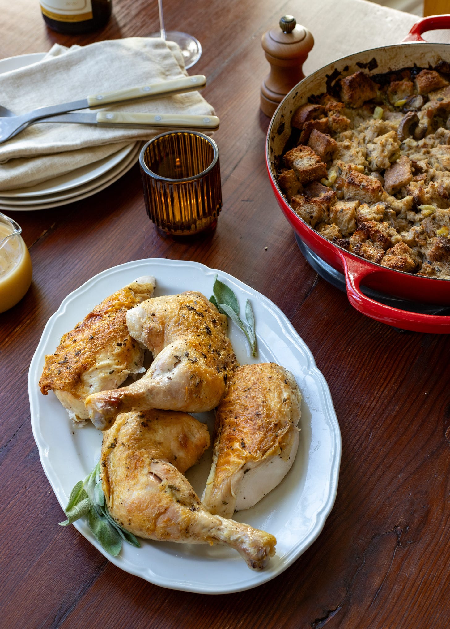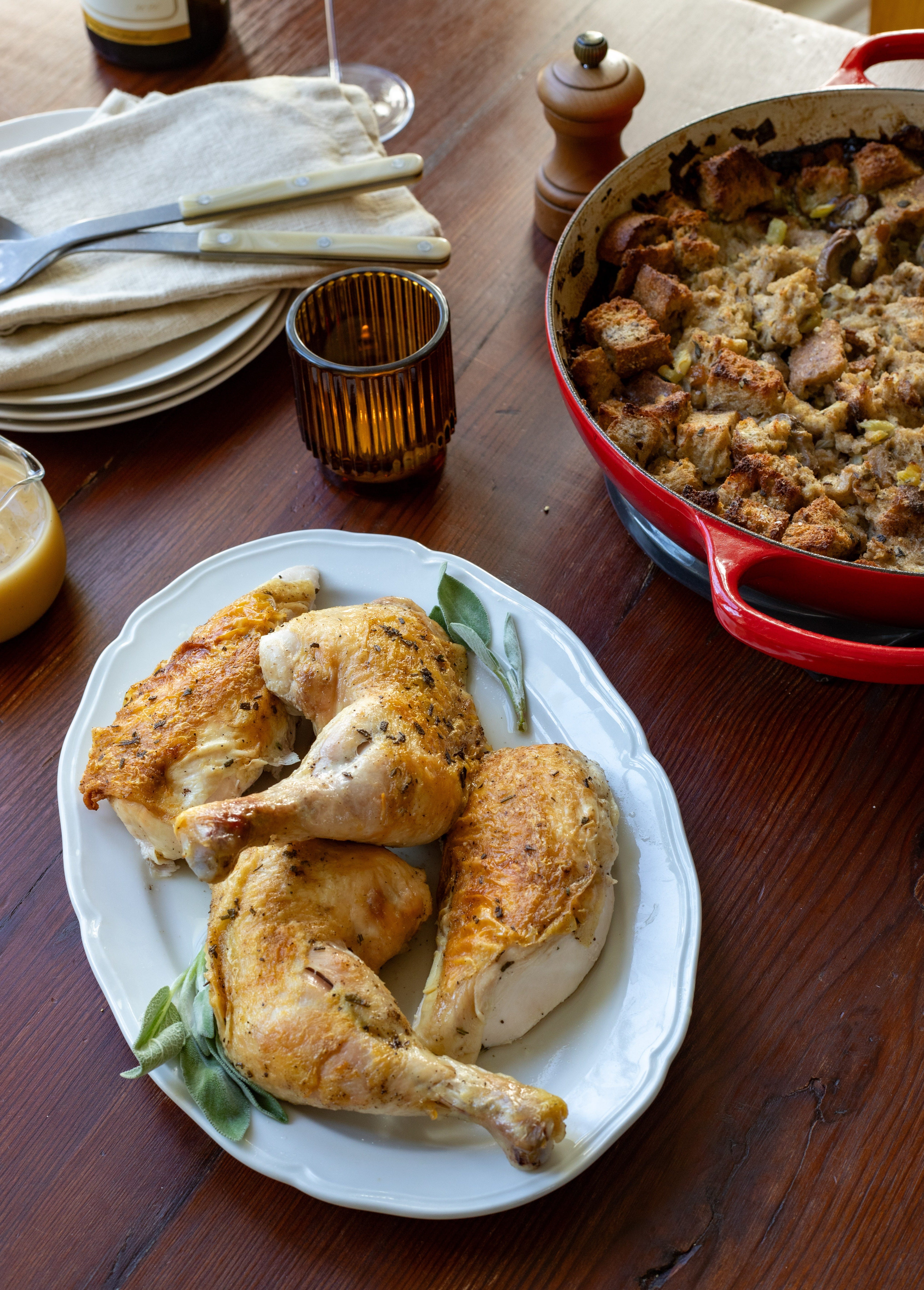 If you, too, long for stuffing the rest of the year, or are throwing a small, turkey-free celebration, or (like some of my expat friends) simply can’t get your hands on a bird, this recipe is for you. And good news for the traditionalists: this is how we roast the big bird, too.