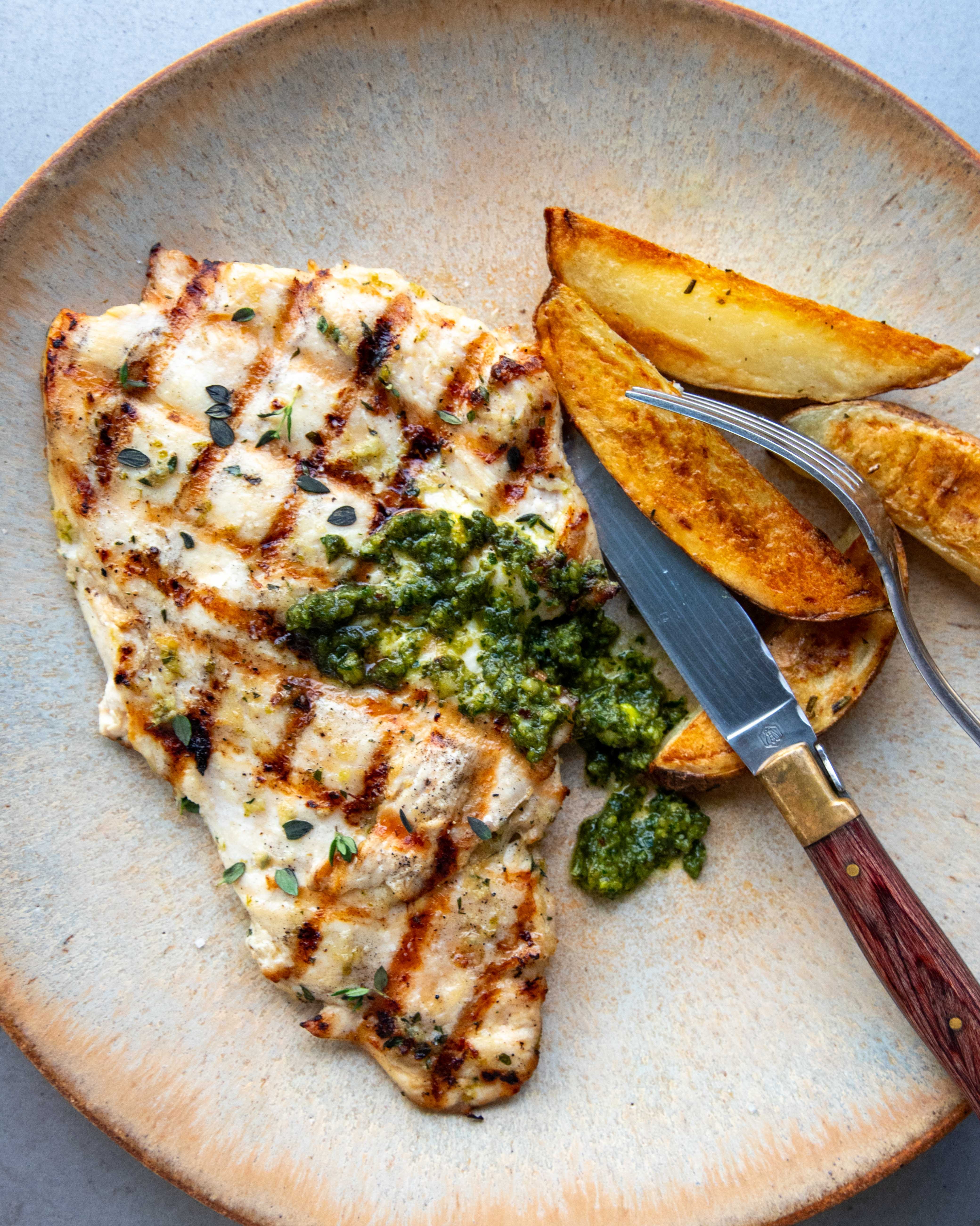 the recipe: Grilled Chicken Paillard + Green Sauce