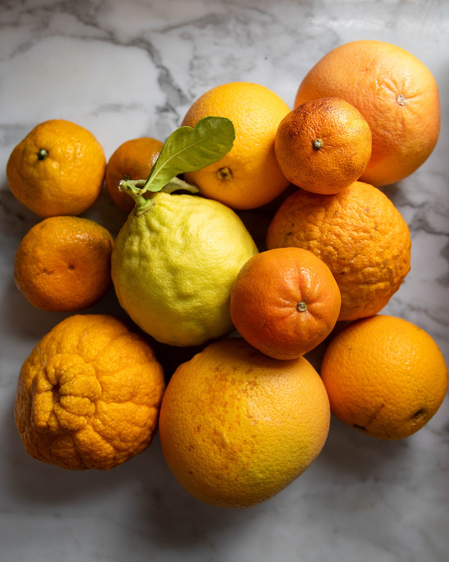 We grow a few cold-hardy varieties in pots at home—satsumas, calamansi, and ponderosa lemon, at the moment—and I pile on even more through our CSA each week. Tangelos! Sumos! Tango mandarins! Flame grapefruits! Citrus was my one and only pregnancy craving (Sour Patch Kids don’t count—I always crave those). I even asked Santa for a big cast-iron manual citrus press this year.